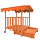 A homokozó konstrukciója előre impregnált tömör fenyőfából készült! A veranda két kerék segítségével könnyen mozgatható a homokozó felett, ami ideális védelmet nyújt az időjárással és a nem kívánatos látogatók, például macskák ellen. Optimálisan alkalmas játékok tárolására és védelmére a naptól és az esőtől. A napellenző optikailag nagyon szép hullámos éllel rendelkezik és UV védelmet biztosít 50+.